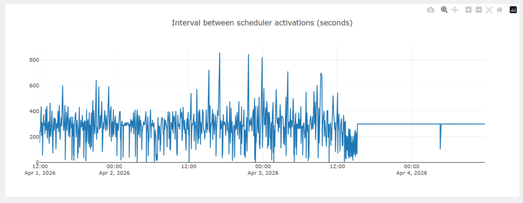 Here is a picture of the scheduler’s unstable execution and an example of a regularly triggered scheduler run.